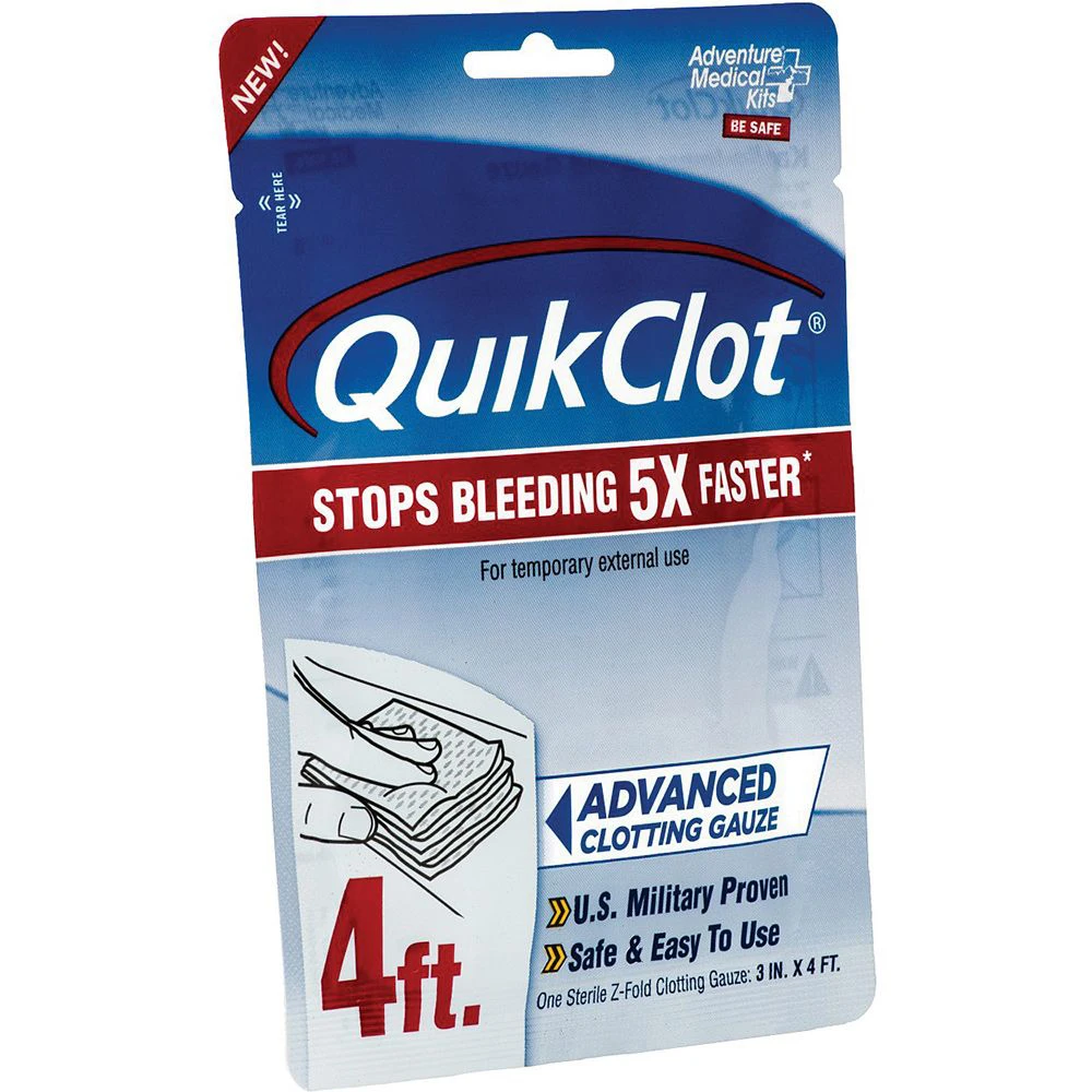 With QuikClot Advanced Clotting Gauze, you have the power to stop bleeding in the palm of your hand. Tested and proven through years of combat use by the U.S. Military, QuikClot can be depended on to save time when every second counts. The hemostatic gauze works on contact to stop bleeding by accelerating your body’s natural clotting process, clotting blood five times faster. QuikClot Gauze is impregnated with kaolin, a naturally-occurring mineral proven to be effective as a hemostatic agent. Inorganic and inert, kaolin is non-allergenic, making it safe and effective to use. This extremely absorbent gauze is flexible and pliable, easily contouring to wounds. Make QuikClot a part of your trauma pack or first aid kit so you’re prepared when emergencies occur.