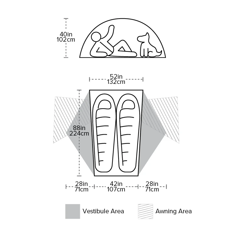 - NEW awning-style vestibules with double-zippers provide multiple access options.