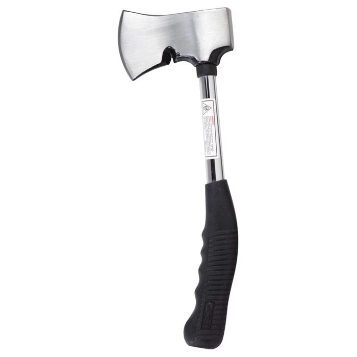 Forged steel axe head with steel shaft and non-slip grip. Length: 13″. Weight: 1.5 lbs.