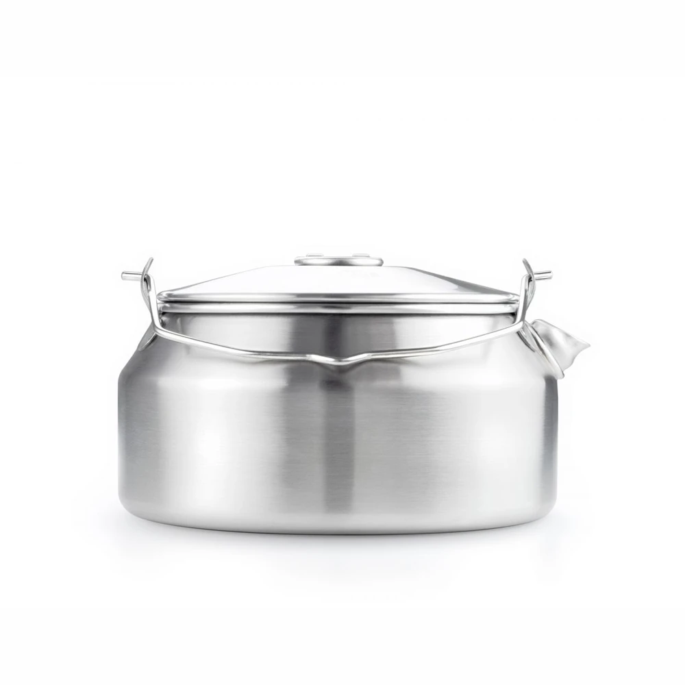 Glacier Stainless Tea Kettle is for family campers and backpackers who demand clean materials and durability in a traditional kettle design.