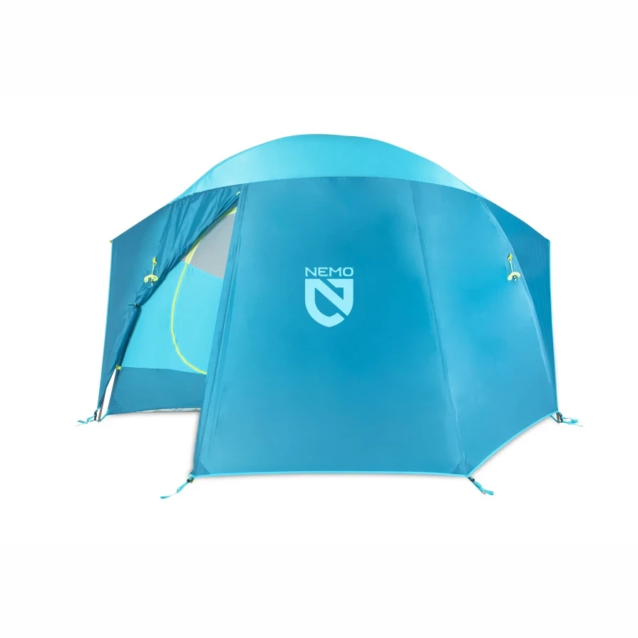 With a spacious standing-height design, simple setup, and vibrant colors, the Aurora Highrise tent adds a dose of joy to every family camping adventure. Steep sidewalls provide massive interior volume, while large rain-protected windows add ventilation and great views. Two large doors and vestibules offer easy entry and plenty of room for keeping camping essentials organized and out of the weather. This versatile and inviting home under the stars features high-quality materials and is ideal for escaping with the whole family or simply spreading out as a couple.