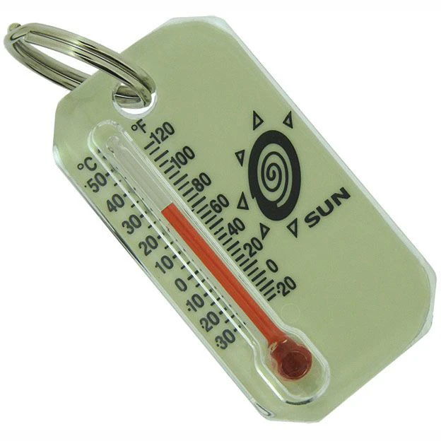 Great for any outdoors person. Use as a zipper pull, key ring or hang on a backpack. The thermometer tube is sealed inside a clear acrylic case with a handy wind chill chart on the back. Fahrenheit/Celsius temperature scale. Range -20 to +120 degrees F and -30 to +50 degrees C. Dimensions: 1 1/8″x 2″. Wt: 0.3 oz.
