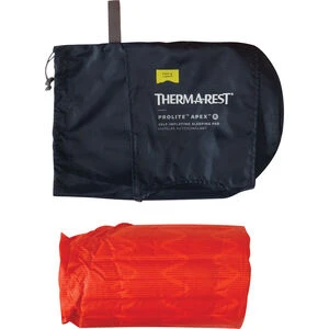 For lightweight self-inflating support, the ProLite Apex brings packable performance and legendary Therm-a-Rest support. The self-inflating foam measures 2 inches (5 cm) and features our StrataCore construction, a design that provides the best warmth-to-weight ratio of any self-inflating foam construction. The ProLite Apex 3.8 R-value allows adventurers to stave off the cold during three-season pursuits. The packable self-inflating pad features the high-performance WingLock valve, which has three-times the airflow rate of the classic valve thanks to a larger opening and one-way inflation. Like all Therm-a-Rest pads, the ProLite Apex is made in market to ensure quality and minimize environmental impact. The pad includes a compact stuff sack.