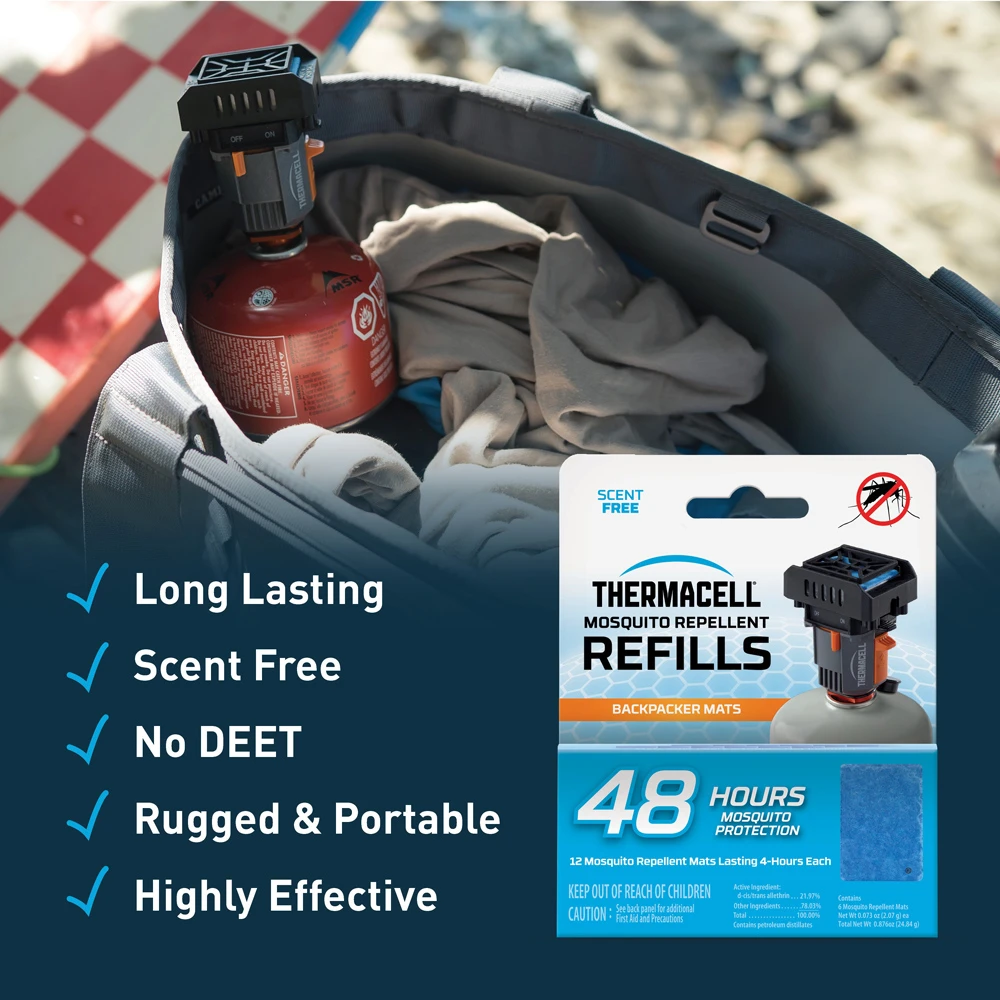 - Mat-only refill for use in the Thermacell Backpacker Mosquito Repeller